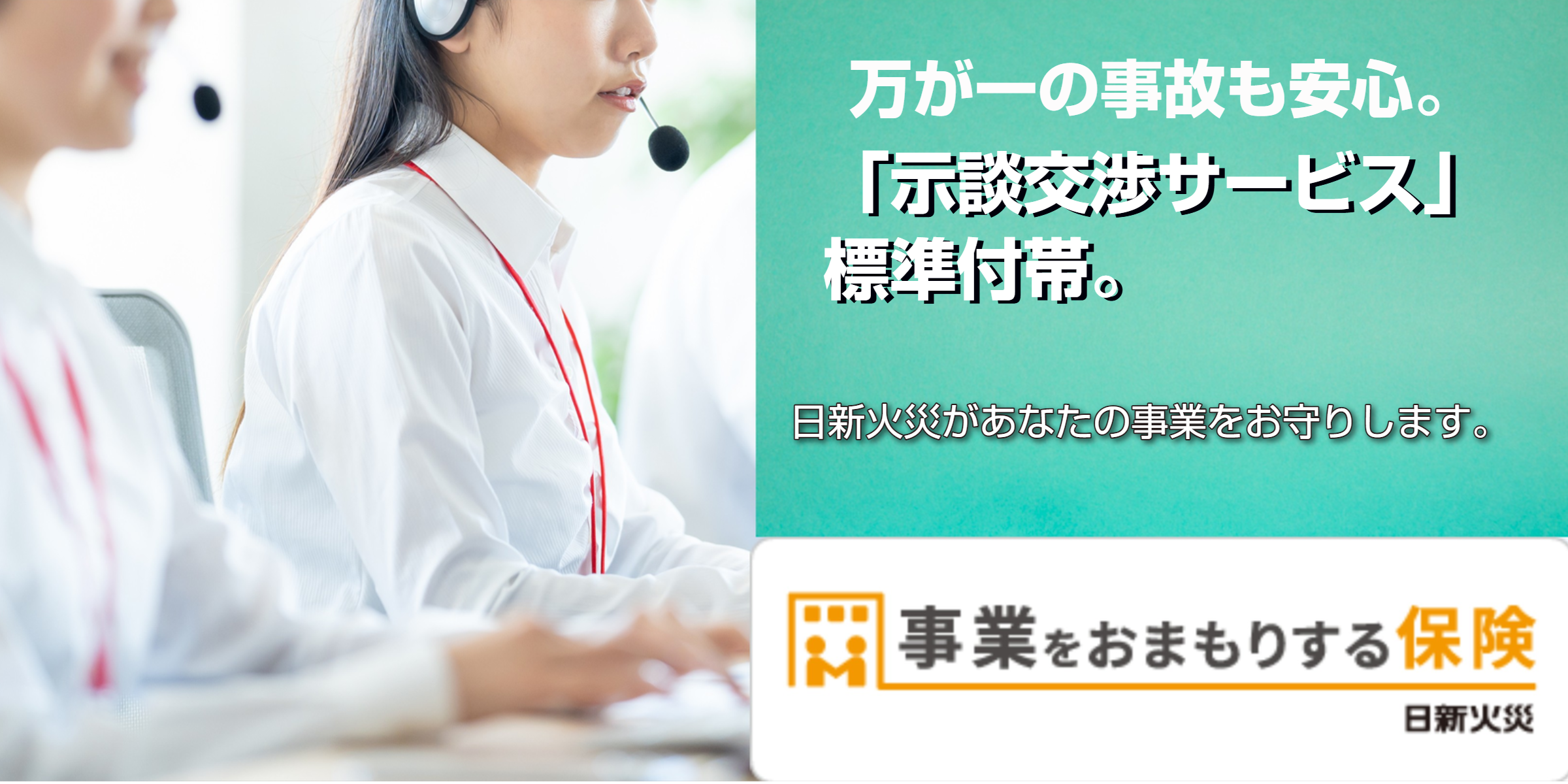 保険金をお⽀払いする事故が発生した際、損害賠償責任の範囲等に関する相⼿⽅との交渉は、⽇新⽕災が代わりにお引き受けします。