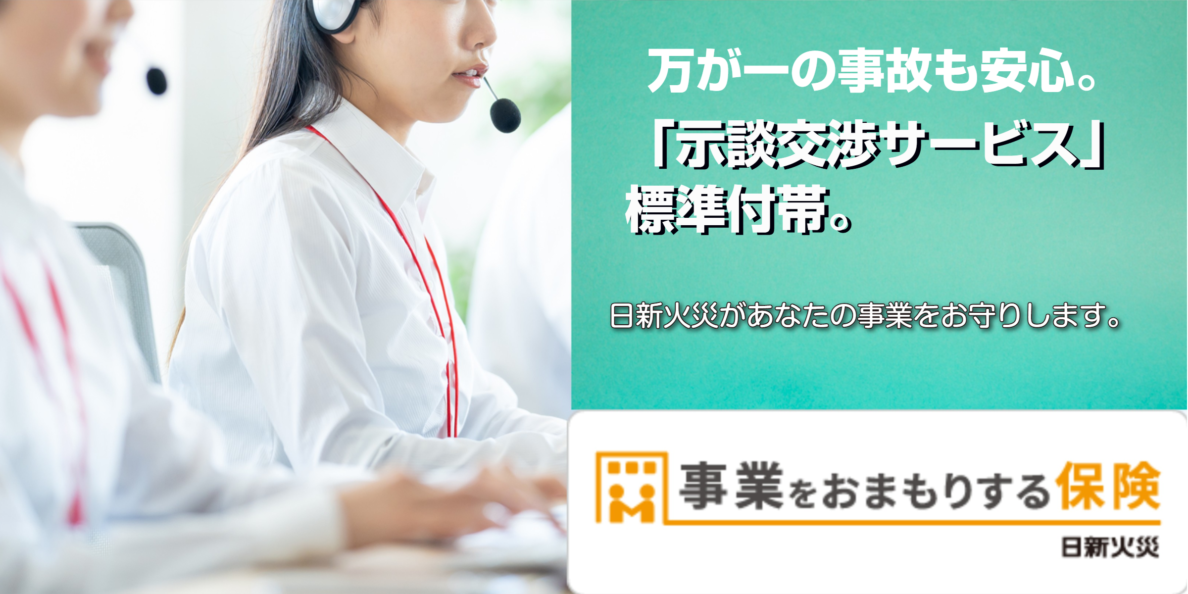 事故発生時の示談交渉を⽇新⽕災が代⾏するサービスを、無料でご利⽤いただけます。